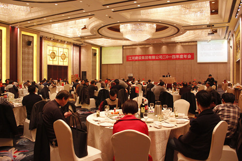 2015年2月15日,江河建設集團有限公司在雷迪森大酒店萬錦大廳召開2014年度公司年會。公司高層、分公司、辦事處負責人及公司全體員工參加了會議。